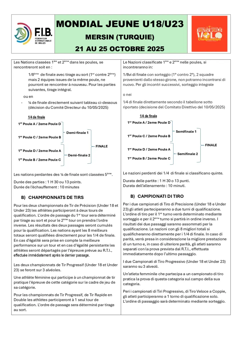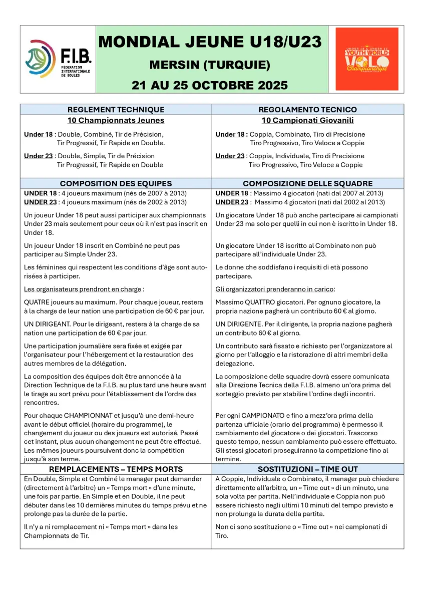 Чемпионат мира среди юниоров по бочче-воло пройдет с 21 по 25 октября 2025 года в Мерсине (Турция).