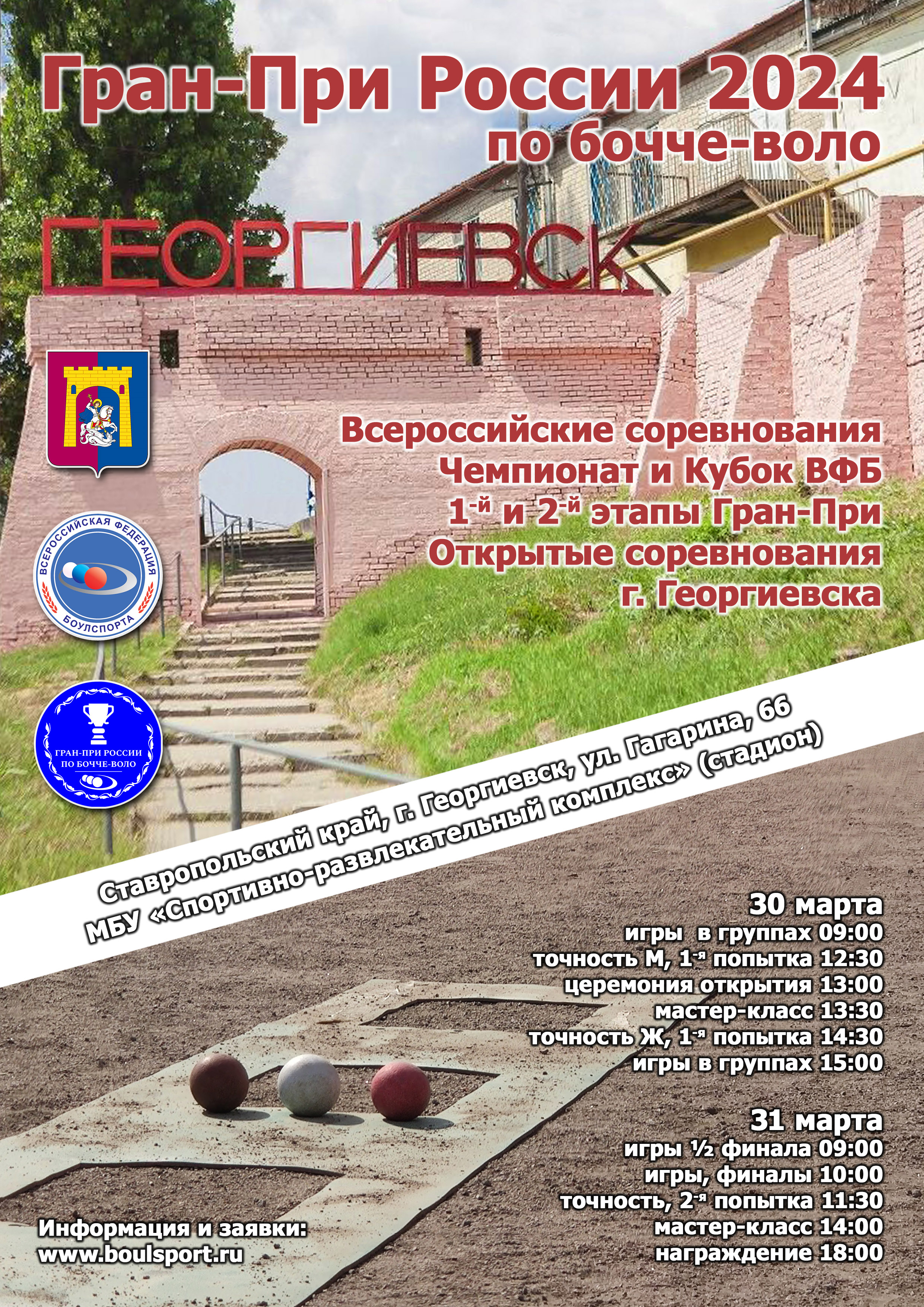Федерация боулспорта Ставропольского края приглашает на открытие сезона в бочче-воло 30-31 марта: чемпионат и кубок Всероссийской федерации боулспорта, первый и второй этапы Гран-При России по бочче-воло (одиночка, точность).
