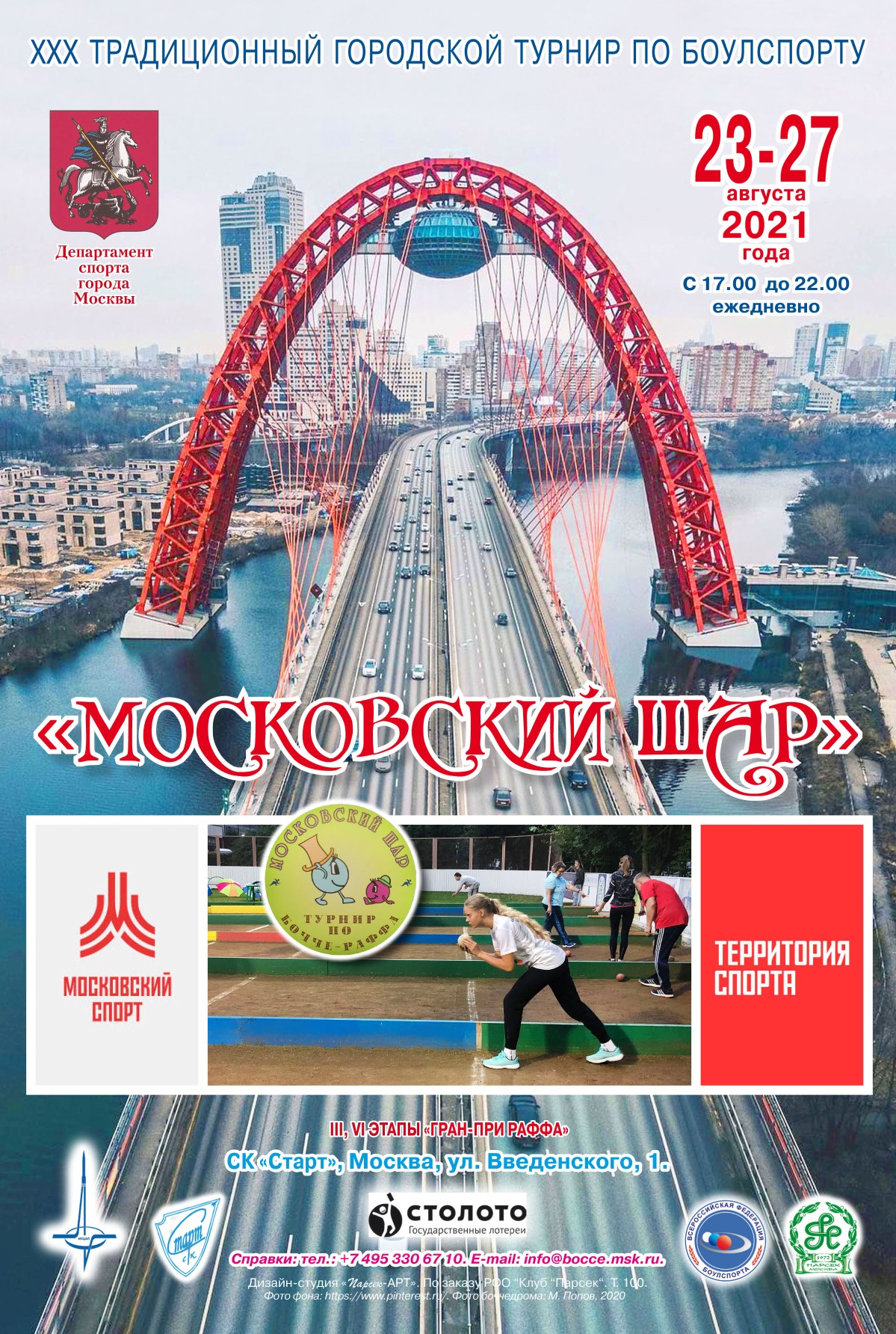 С 23 по 27 августа прошел юбилейный тридцатый городской турнир по боулспорту «Московский шар». Соревнования были организованы в столичном спортивном клубе «Старт». Состязания проводились в трех номинациях: «бочче-раффа» (мужчины, женщины и две возрастные категории), «бочче-раффа-двойки» (мужчины, женщины), «бочче-раффа-тройки». Помимо москвичей в турнире приняли участие спортсмены из Санкт-Петербурга, Брянской и Московской области. Игры получились зрелищными, эмоциональными и стратегически выверенными. На открытие мероприятия присутствовали заместитель главы Управы района Коньково города Москвы по работе с населением Елена Сергеевна Андреева, генеральный секретарь Комитета национальных неолимпийских видов спорта Анатолий Борисович Шишкин, президент Всероссийской федерации боулспорта Николай Николаевич Зелинский.