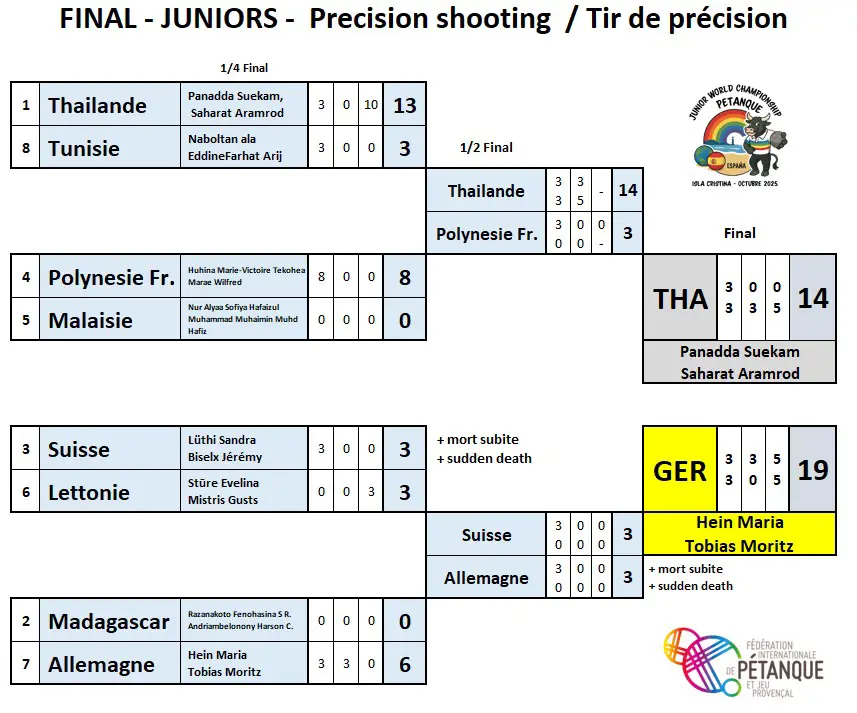С 23 по 26 октября 2025 года в испанском городе Исла-Кристина прошел чемпионат мира по петанку среди юниоров. В соревнованиях приняли участие молодые спортсмены из 28 стран, которые состязались в трех дисциплинах: тройки-микст, двойки-микст и точность-микст.