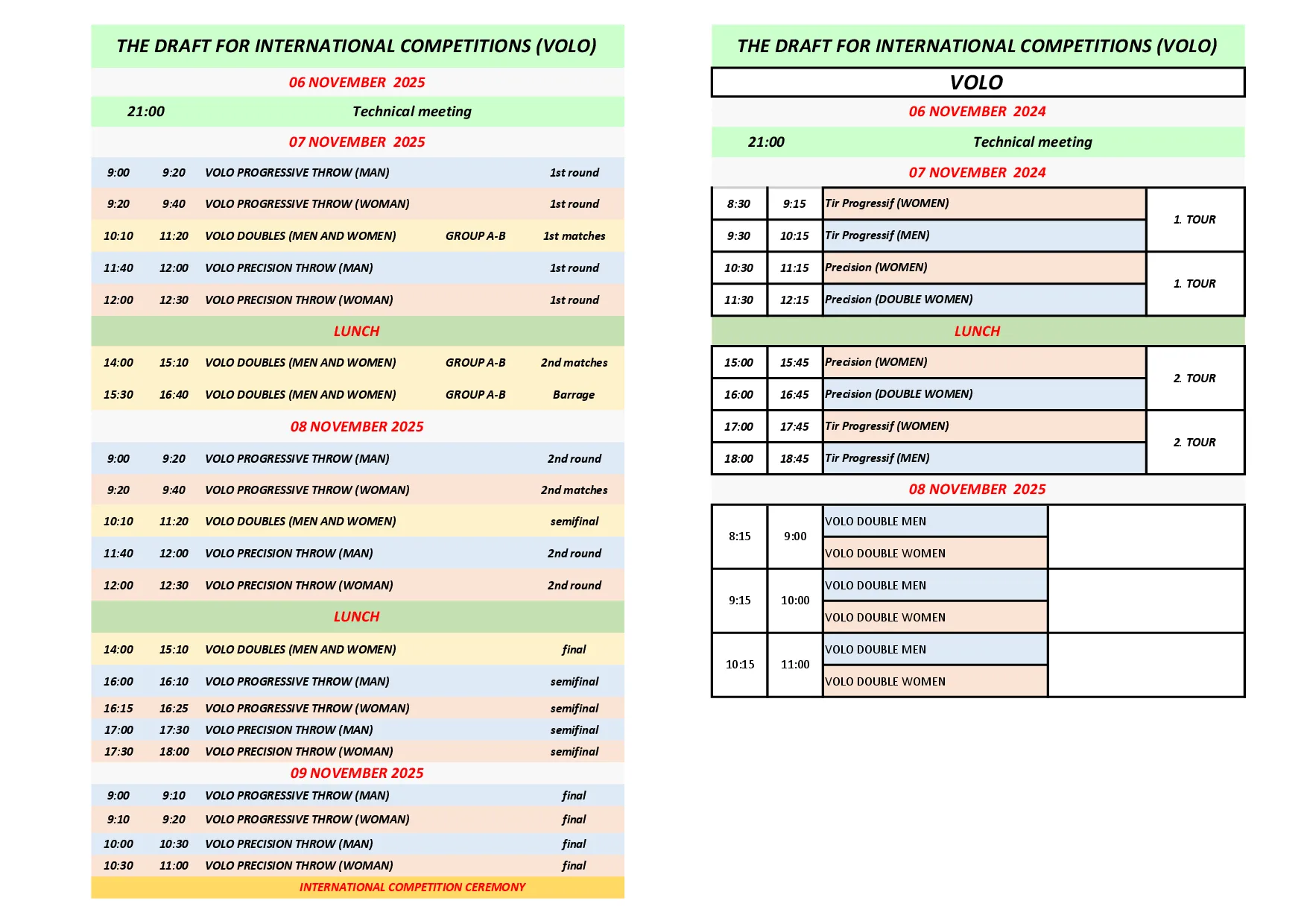 - Бочче-воло: прогрессив (мужчины и женщины раздельно);