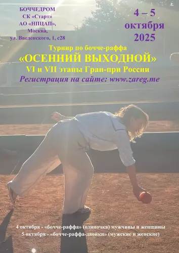 5 октября 2025 года в Москве на боччедроме СК «Старт» АО «НПЦАП» состоялся турнир «Осенний выходной» по бочче-раффа, который включил в себя шестой и седьмой этапы Гран-При России в одиночной и парной дисциплинах.