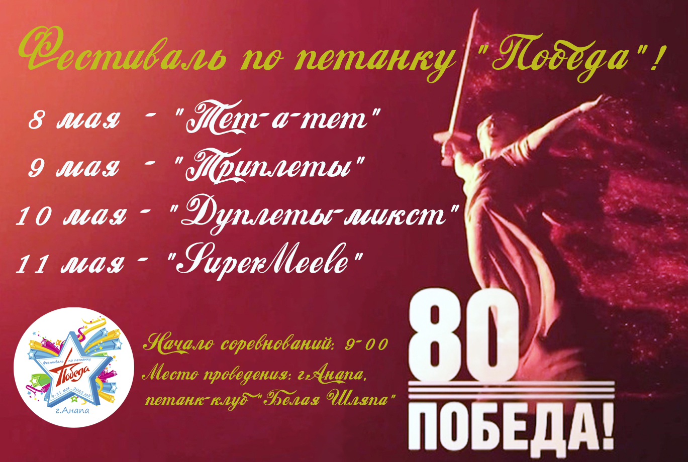 С 8 по 11 мая на площадках петанк-клуба «Белая шляпа» прошел IV межрегиональный фестиваль по петанку «Победа», посвященный 80-летию Победы в Великой Отечественной войне. В Анапу приехали спортсмены из разных регионов России.
