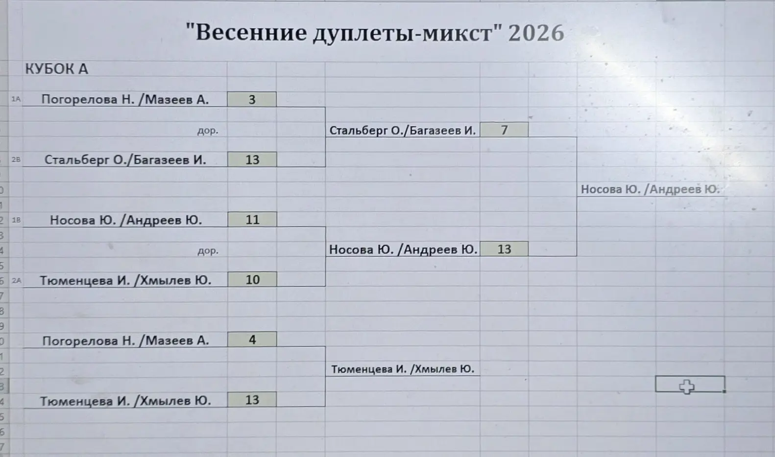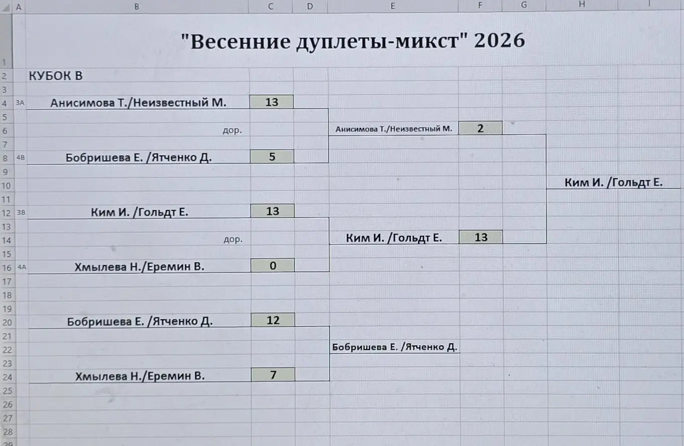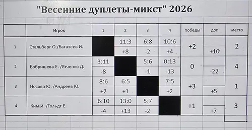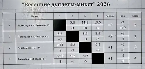 Турнир по петанку «Весенние дуплеты-микст» прошел 9 марта 2026 года в Томском петанк-клубе. В соревнованиях приняли участие восемь дуплетов, в том числе три спортсмена из города Березовский Кемеровской области, которые набираются опыта в компании томских игроков.