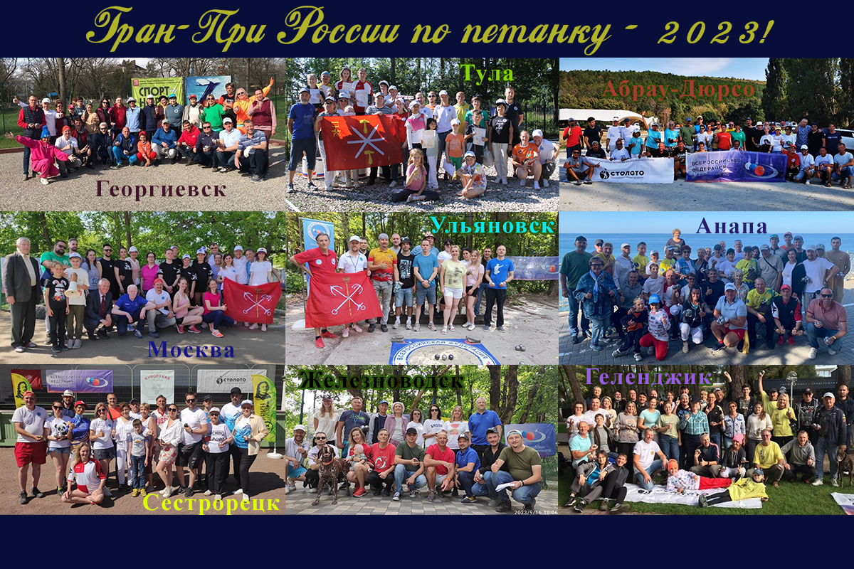 Этапы «Гран-При России по петанку — 2023!» — это самодостаточные турниры, которые также являются: Чемпионатами ВФБ, Кубками ВФБ и крупными открытыми турнирами регионов России, где активно развивается боулспорт.
