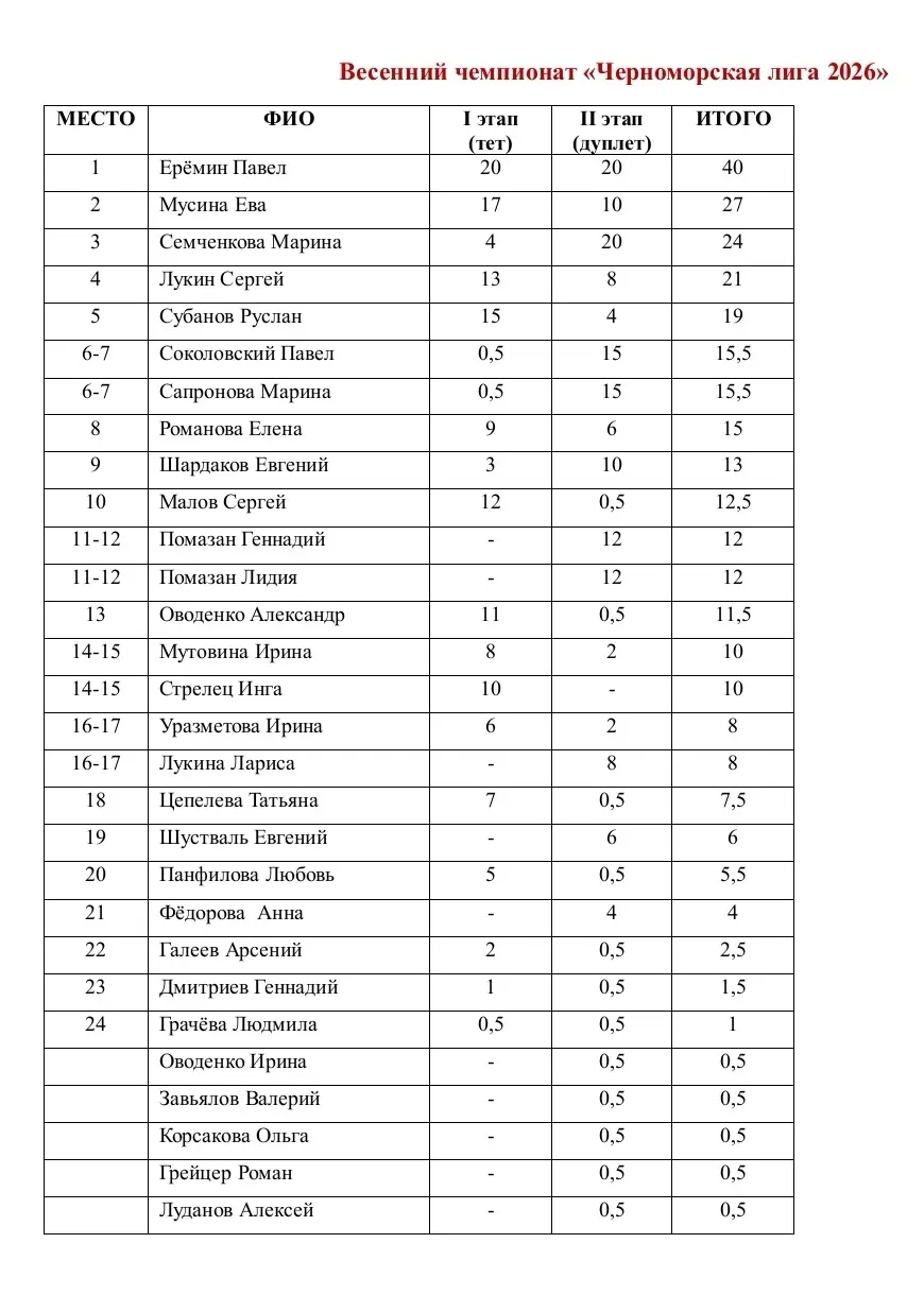 Итоги турнира: