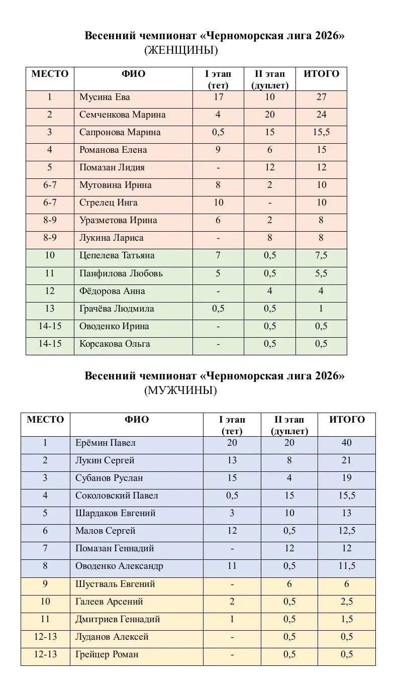 Второй этап весеннего чемпионата «Черноморская лига 2026» прошел в субботу, 4 апреля 2026 года, в Анапе на площадках клуба «Белая шляпа».